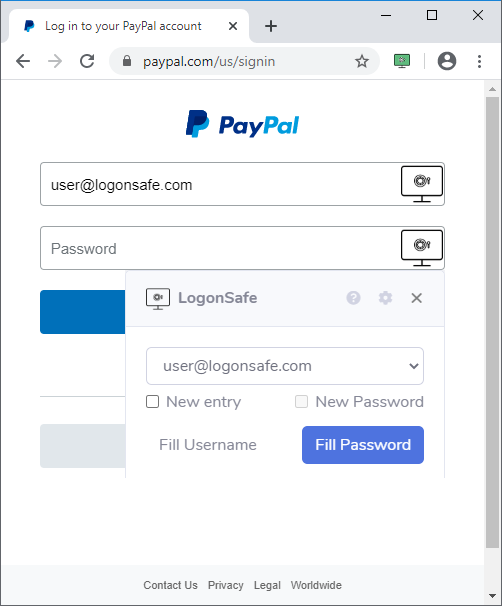 A normal user interaction with the LogonSafe service will look like most other password management solutions, filling credentials when requested, and saving them to the Primary Device.